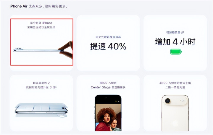 值得一提的是,iPhone Air的机身采用了5级钛金属边框。苹果表示,这款设备符合并超越了其“严格的弯曲测试要求”。